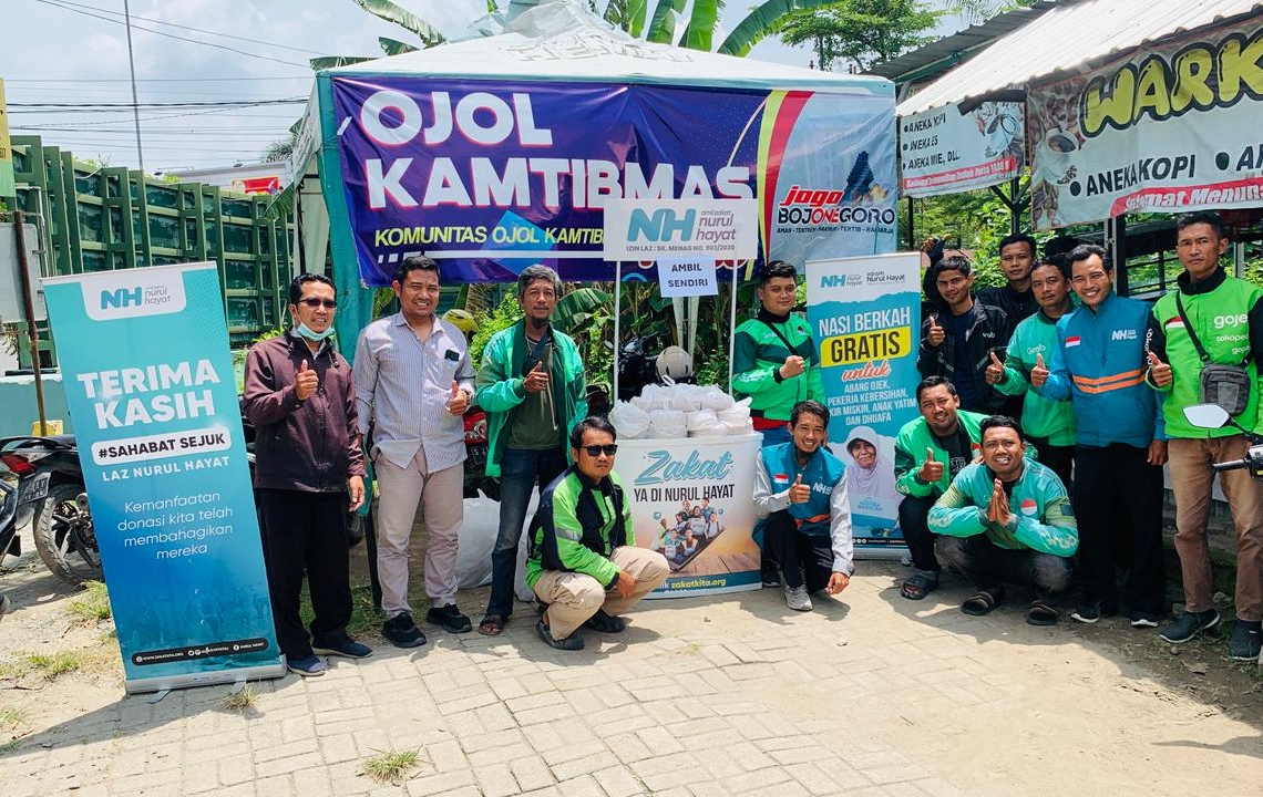 NewsBojonegoro.com — Lembaga Amil Zakat (LAZ) Nurul Hayat kembali menunjukkan kepedulian sosial melalui aksi berbagi 100 nasi kotak kepada para pengemudi ojek online (ojol) dan abang becak di jalan pemuda timur Bojonegoro. Kegiatan yang berlangsung di titik kumpul komunitas Ojol Kamtibmas itu disambut antusias oleh para penerima manfaat.
