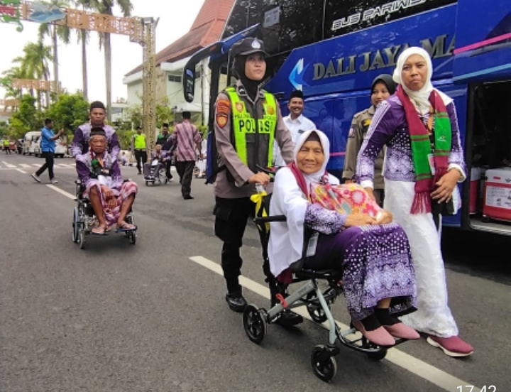 Kehadiran anggota Polwan Polres Bojonegoro memberikan warna tersendiri pada acara tersebut. Selain menjalankan tugas pengamanan, mereka juga memberikan asistensi yang signifikan kepada para calon jamaah haji lansia. Dengan profesionalisme dan penuh kesabaran, para Polwan membantu para lansia naik ke dalam bus, mendorong kursi roda, serta membantu membawa barang bawaan.